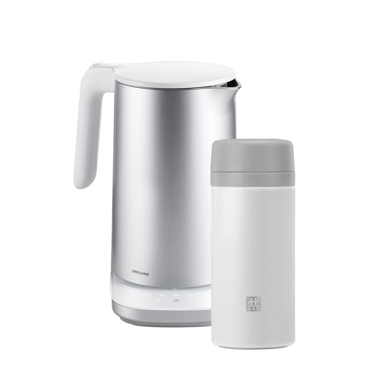 Tè, caffè e zuppe vanno gustati caldi. Fai bollire l’acqua nel tuo nuovo bollitore ZWILLING ENFINIGY Pro in argento e mantieni calde le tue bevande con la borraccia termica ZWILLING in bianco-grigio. Goditi questo set! Doppio piacere, sia per il bolltore che per la bottiglia termica, entrambi con isolamento a doppia parete per una maggiore stabilità della temperatura all’interno e una sensazione di freschezza all’esterno. Grazie a sette programmi di temperatura, il bollitore ZWILLING ENFINIGY Pro ti permette di scegliere la temperatura ideale per il caffè, il tè o anche per gli alimenti per bambini. E se decidi di non utilizzare subito l’acqua, il bollitore può anche tenerla in caldo. La borraccia termica può fare lo stesso in viaggio. Che sia fredda o calda, la borraccia da 420 ml mantiene la temperatura per richiesta da te per una bevanda dal sapore e temperatura perfetti. Può mantere le bevande calde fino a sette ore e fredde fino a dieci ore. Cosa ne pensi? Non ti fa venir voglia di bere tante buone bevande? Allora regalati questo set da due: un potente bollitore dall’elegante design dello studio milanese Matteo Thun e Antonio Rodriguez, insieme alla borraccia termica, compagna immancabile per il lavoro, la scuola o lo sport.