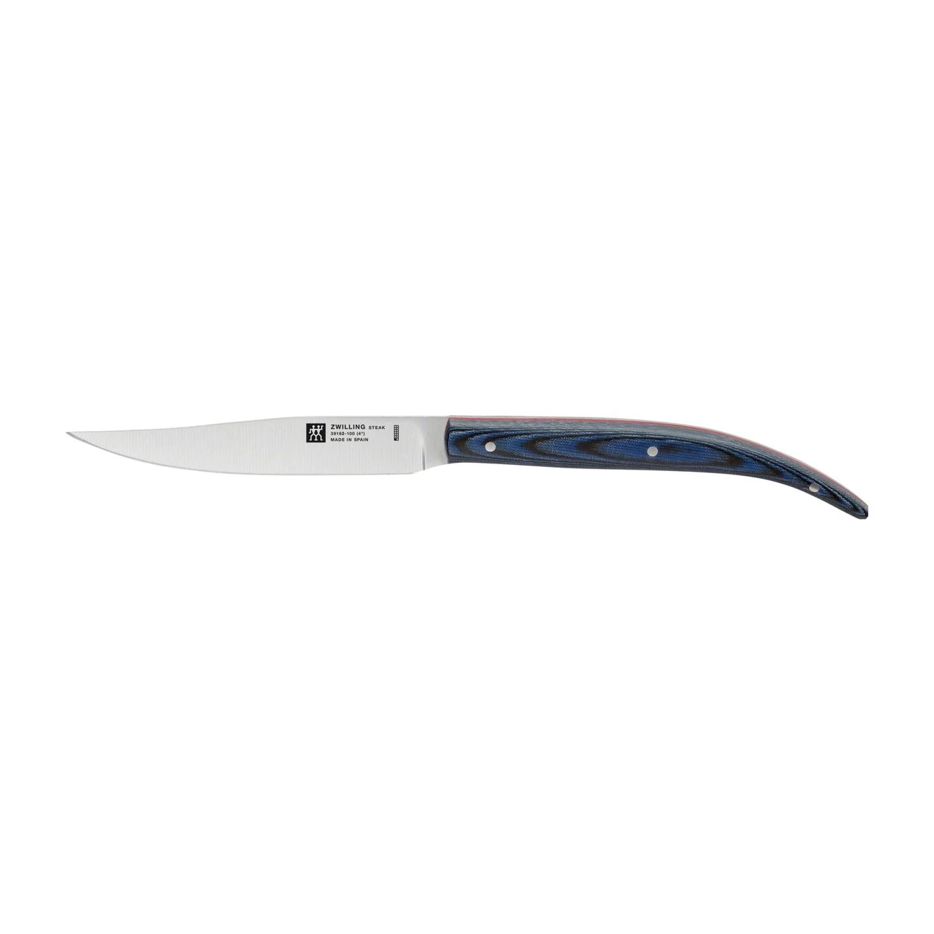 - Manico ergonomico in micarta blu nel classico design a tre rivetti