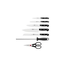 - Contiene 1 spelucchino per lardellare e guarnire (10 cm), 1 coltello multiuso (13 cm), 1 coltello da carne (15 cm), 1 coltello da cuoco (20 cm), 1 coltello da pane (20 cm), 1 forchettone da carne (14 cm), 1 paio di forbici multiuso, 1 acciaino, 1 ceppo